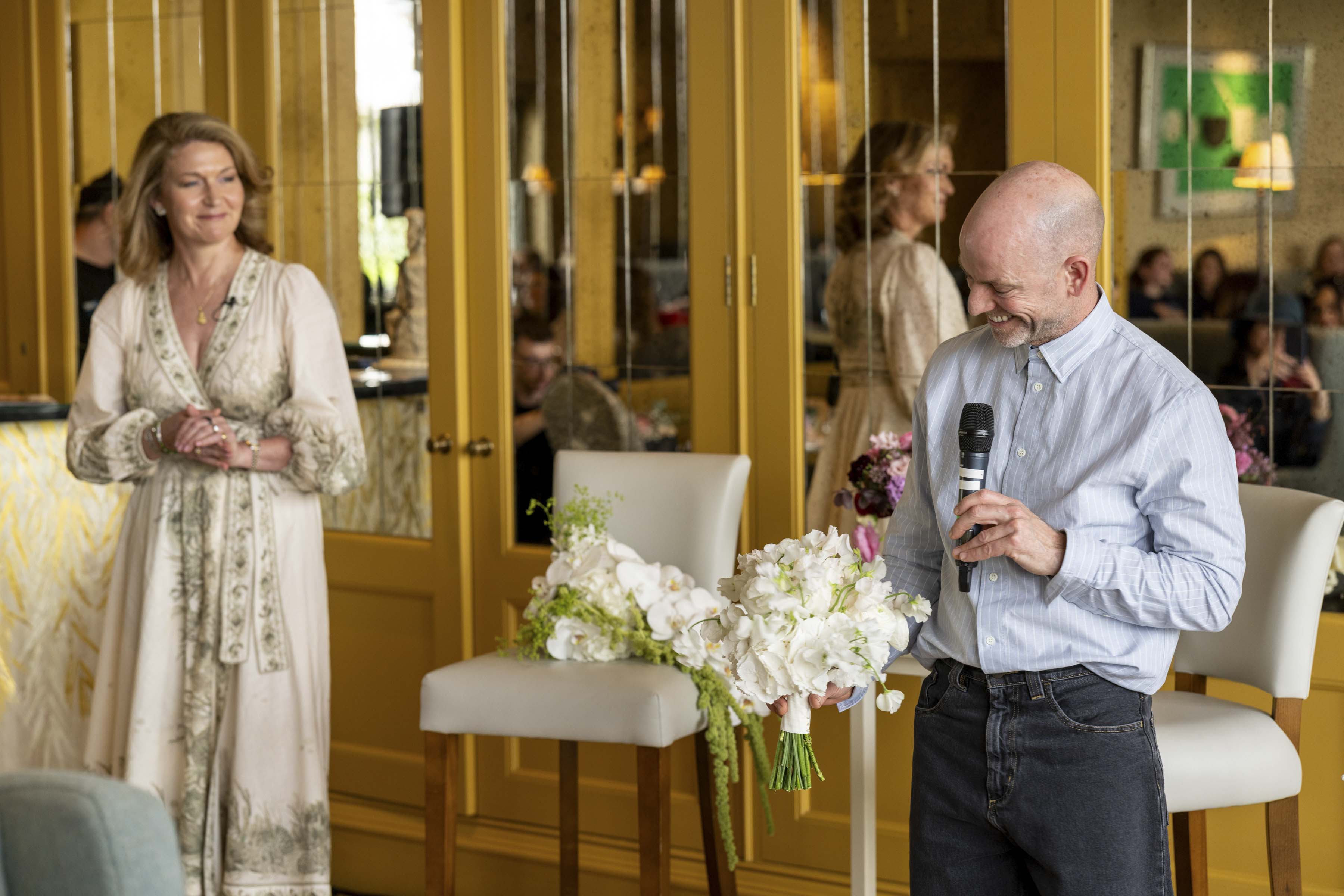 Next it was time to discuss the all-important wedding flowers. Tara was joined by Mark Grehan of The Garden to discuss trends, budgets and refining your style. Mark advised brides to have an initial consultation with your florist about six months out from the wedding to get a handle on expectations versus costs. “We’re overstimulated by all of the images we see online. You might want a huge floral arch, but it could cost €10,000, so that first conversation is really important to iron all the details out.” He also noted that the cost of flowers has risen 25 per cent since Covid, so budgets may not stretch as far now. Focus on what’s important to you, often that’s the dining tables as it’s where your guests will spend most of their time. Mark showcased four spectacular bridal bouquets and discussed current favourites – large calla lilies are very popular right now – and the importance of opting for seasonal blooms.