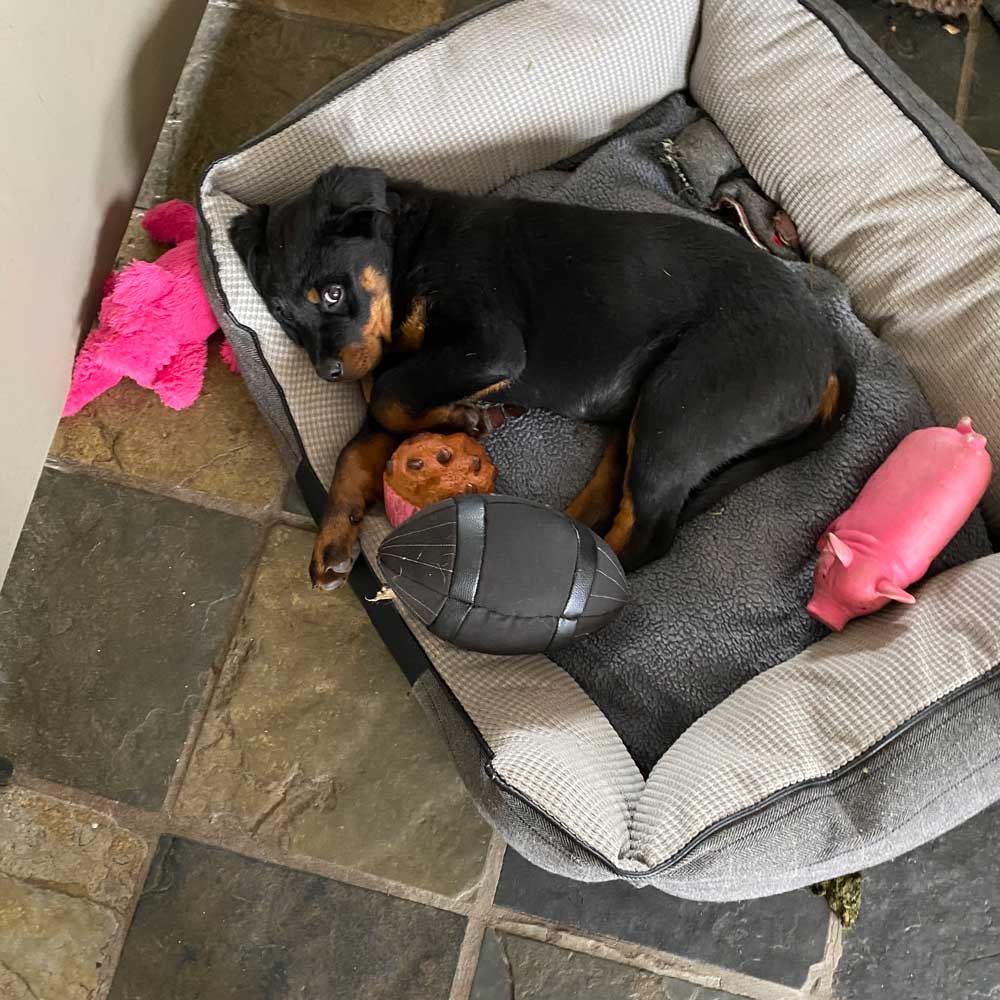 Bailey is the most gentle creature I have ever met – he is a complete antidote to the madness of our home. The vet initially thought he was so relaxed and gentle that he could possibly have Addison’s disease! He didn’t in the end, he is just one of life’s gentle souls.