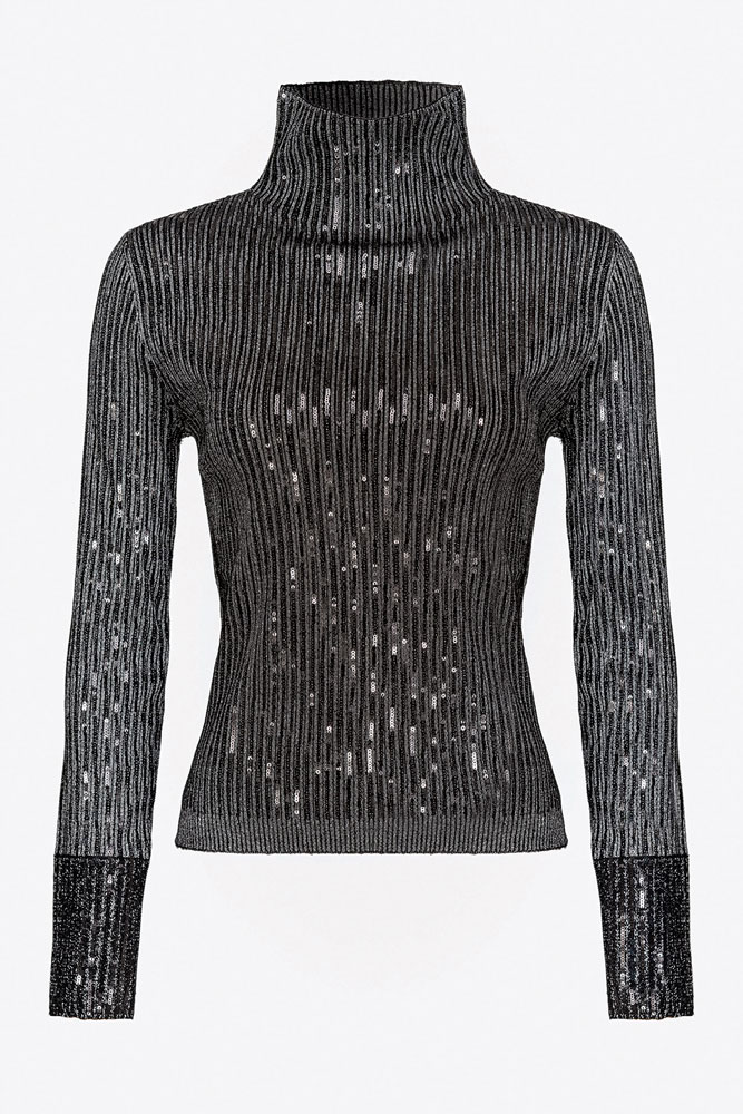 Silver Gilroy sequin polo-neck sweater, Pinko, €295, at Harvey Nichols, Dundrum Town Centre, Dublin 16.