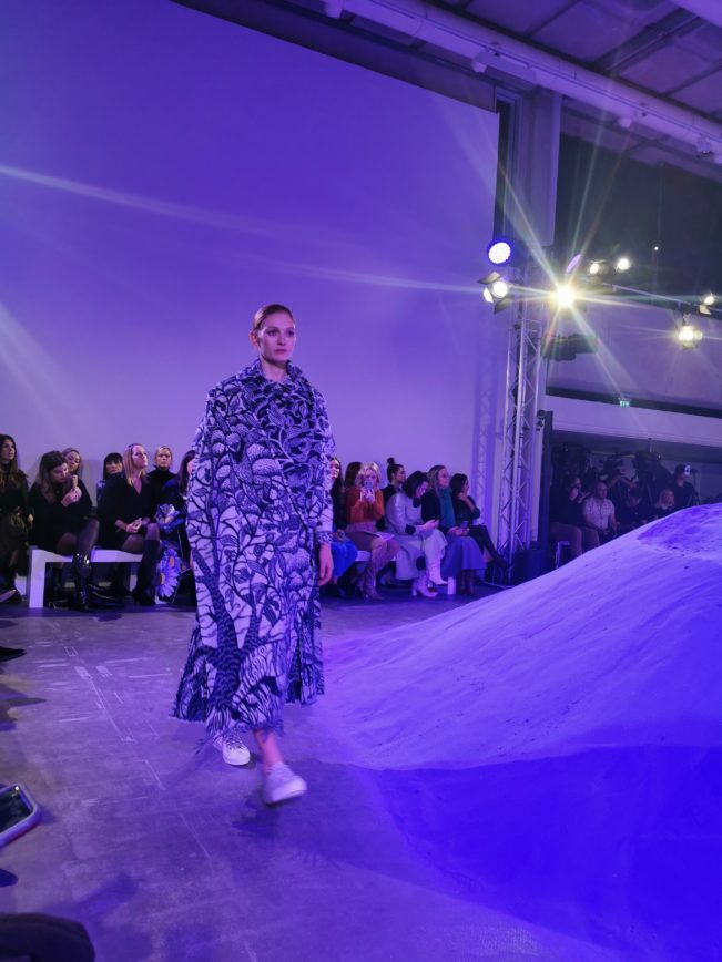 Dior’s beautiful prints stole the show. In their first look, a full length shawl was draped across the model’s body worn with matching shirt and pleated skirt below.