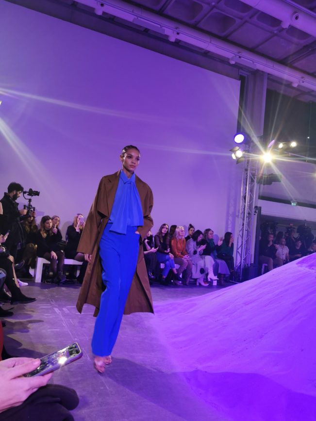 Victoria Beckham’s tobacco and cobalt blue colour combo caught our eye.