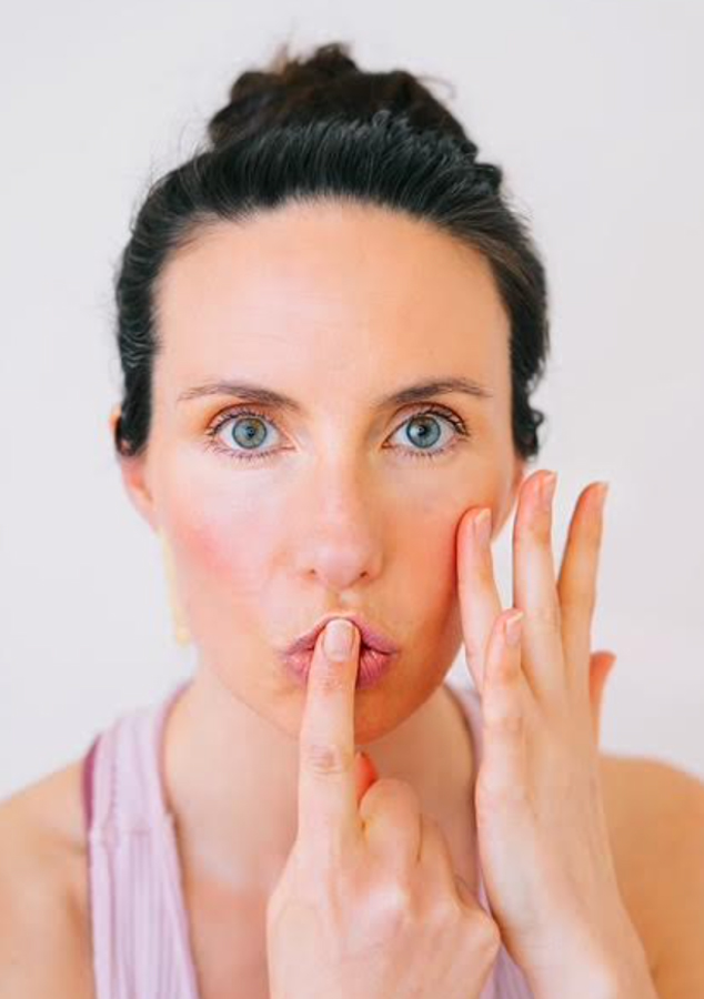 1. Go slow: This isn’t a race. Face yoga is about precision and control: work the muscles deliberately, feeling what’s actually engaging rather than just going through the motions.