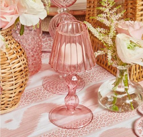 “Instead, I use moody ambient light from our LED cordless lamps and lots of warm candle light,” explains Rebecca Roe, creative director of Hedgeroe Home. “I like to play with heights, using both low tealights and taller tapered candles. Our pink lacquer twisted tapered candles are the perfect addition to a Valentine’s tablescape.”