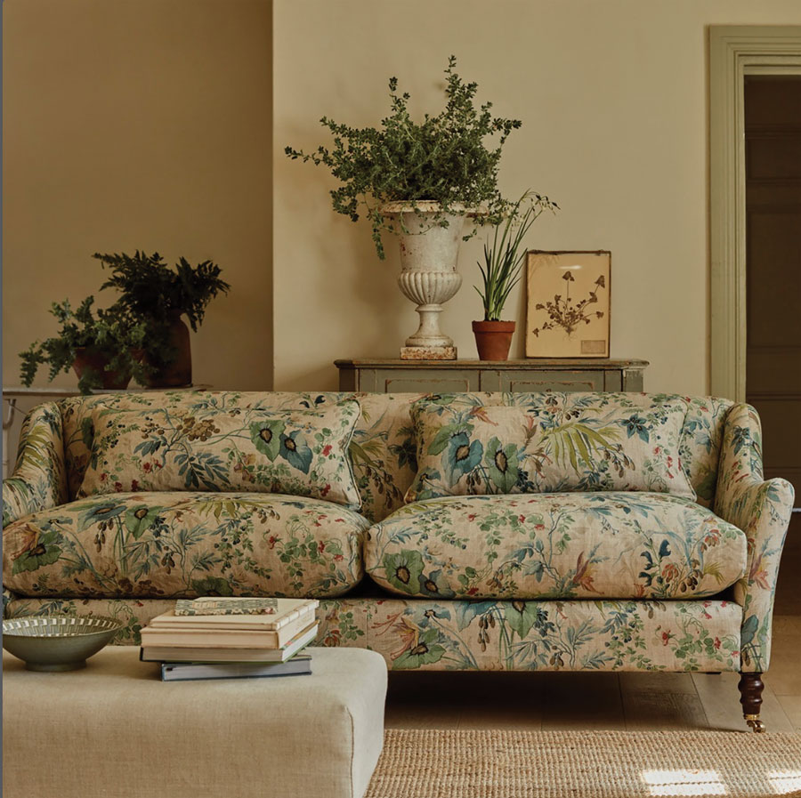 Coco sofa in The English Garden Kitty linen by Linwood, from €6,325; www.sophieconran.com.