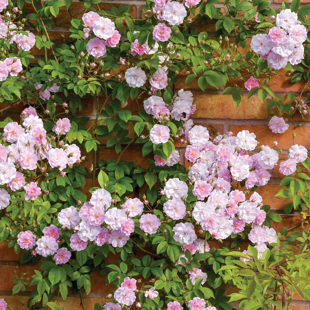 They are amazingly tough and disease resistant, which is why you often find them in long abandoned overgrown gardens still doing their thing. Some of the most famous ramblers are the beautiful giants like the airy “Paul’s Himalayan Musk” with its pale pink rosette-shaped flowers. It will easily grow to 12m in height. However, new breeding programmes mean there are much smaller varieties available such as the excellent “Little Rambler” (3m) and the more recent “Snow Goose” that will grow to only 2.5m. If you only want to cover a small wall area you can still enjoy these roses without having to do mortal battle with them each winter at pruning time – and invariably come out the worse for wear with nasty deep scratches and sore arms.
