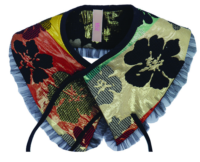 Irish-made, using vintage fabrics, this reversible Frida collar lends a Bloomsbury air to any (black) outfit, €70; www.misecollars.com.