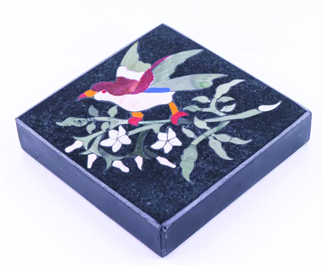 A paperweight with a bird on branch in Pietra Dura, €280, www.belisarius.com.