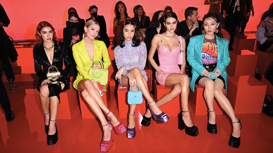 PUSHING OUT: Mad platforms! Bambi-legs are out and silly shoes shelved, for now. Ballet flats are back, but don’t wear them all day, every day. Alternate with heels to give your back a break. So sensible!