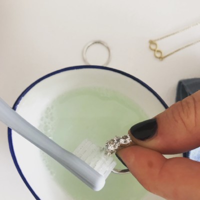 First and foremost, as far as we’re concerned, gin is for drinking – so ignore the old wives’ tales about using spirits as a cleaning agent and instead reach for a humble bottle of fairy liquid to clean your engagement ring and other fine jewellery. Grab a toothbrush, a bowl of warm water and a soft cloth, and you’re ready to begin.