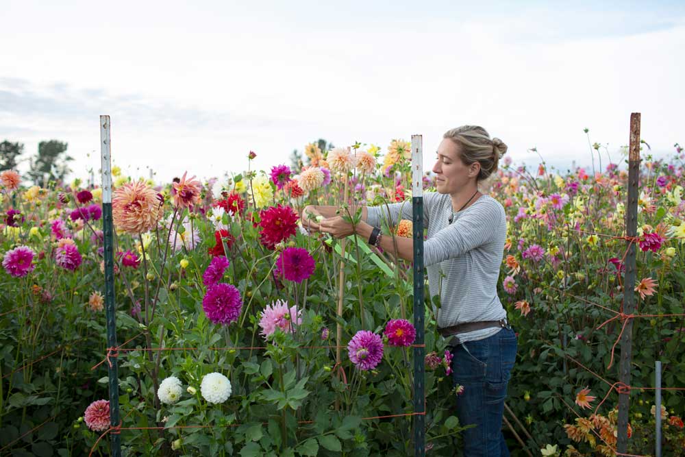 Many years ago, when I was just starting to grow cut flowers, I got a phone call from a local flower grower telling me to load up the kids and my shovel and head over to her house. It was a crisp morning in October, just after our first autumn frost, and I found her digging up dahlias. At the time I knew very little about these bloomers, only that I admired them every time I visited her garden. We worked through the morning lifting her massive clumps of tubers, splitting off a chunk of each variety for me to take home to my garden. Her generosity was my first real taste of just how giving and passionate flower people are. When I offered to pay her or pull weeds in exchange for the station wagon full of tubers that she had so generously shared, she said she didn’t want anything in return. Her one request was that I pass along some of the abundance to another gardener in need once my garden was established.