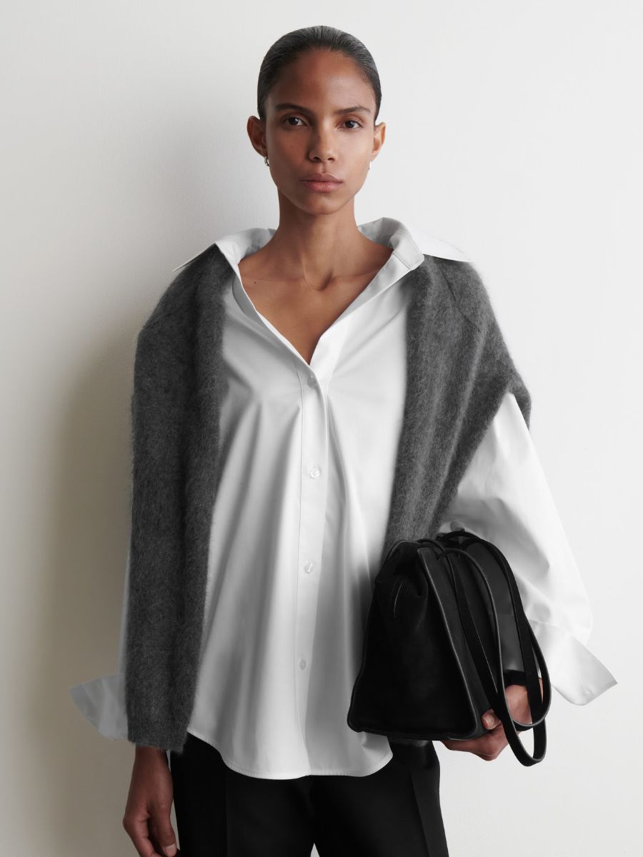 Fashion often cites a simple white shirt as one of the most insouciant wardrobe staples that can be bought (or borrowed from the man in your life). Especially, if it’s a little roomy, akin to a boyfriend fit. In the latter half of Birkin’s life she leaned into looser shapes and tomboyish separates. The jeans shorts and fitted white tees were traded in for oversize white shirts in cottons and linens, and fine knits paired with mannish, workman-style trousers and trainers.