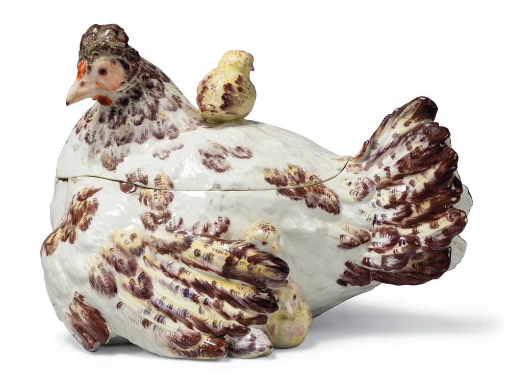 Clearly a fan of auctions, Copping has enjoyed perusing and purchasing antiques. “I have been able to build my collection over the years from antique fairs, flea markets as well as at auction. I have always found that an auction room offers a wealth of rare and unique pieces and this continues to attract me. My home includes both an English sensibility, reflecting my roots, with bohemian fabrics and English furniture but also more formal French pieces. One of my vices is how many porcelain services we own. We seem to have developed an obsession for tableware so I adore the Indian Basket weave part dinner service, the Elizabeth II silver table service and the charming Chelsea porcelain Hen & Chick tureen included in the auction. I am very much looking forward to being able to entertain my friends once again this summer, with my table decorations as a centrepiece and talking point.”