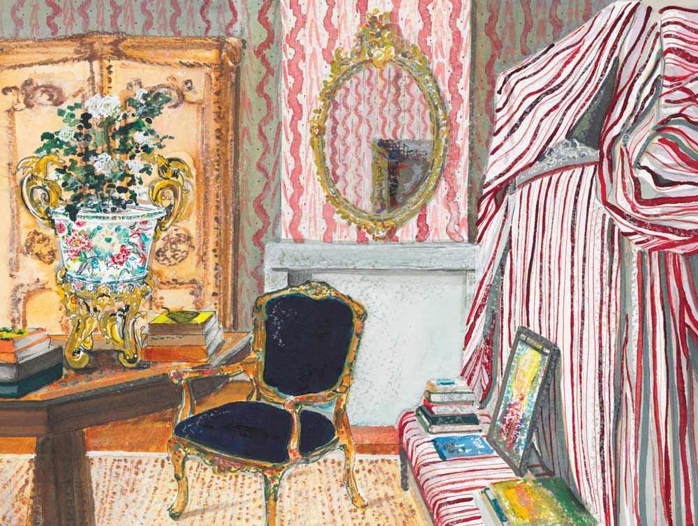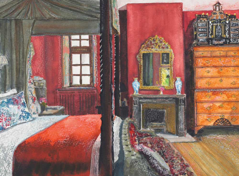 La Carlière is also the backdrop to a new collaboration with Christie’s. Copping selected lots from its forthcoming sale and incorporated these items into six rooms at La Carlière – providing inspiration on how to mix antiques with contemporary furnishings. Due to lockdown restrictions, the rooms were photographed by Billal Taright and then beautifully illustrated by interiors portrait artist SJ Axelby.