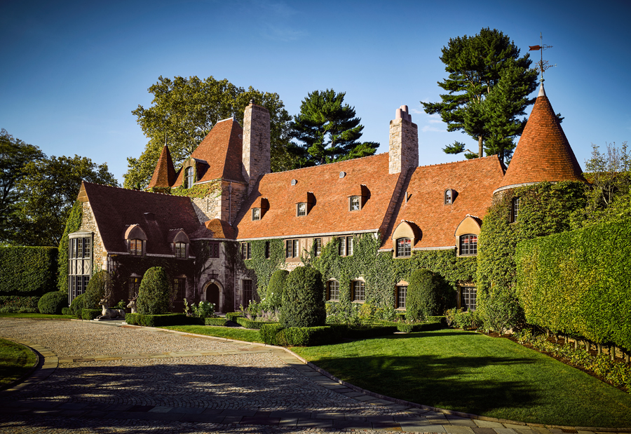 Designed in 1939 by noted architect Greville Rickard for real estate magnate Charles Paterno, the six-bedroom residence on 22 acres could be described as a cross between a Normandy château and an English Tudor manor house. Features include an Elizabethan-style carved-oak staircase, limestone fireplace, beamed ceilings, elaborately carved millwork and intricate plasterwork.