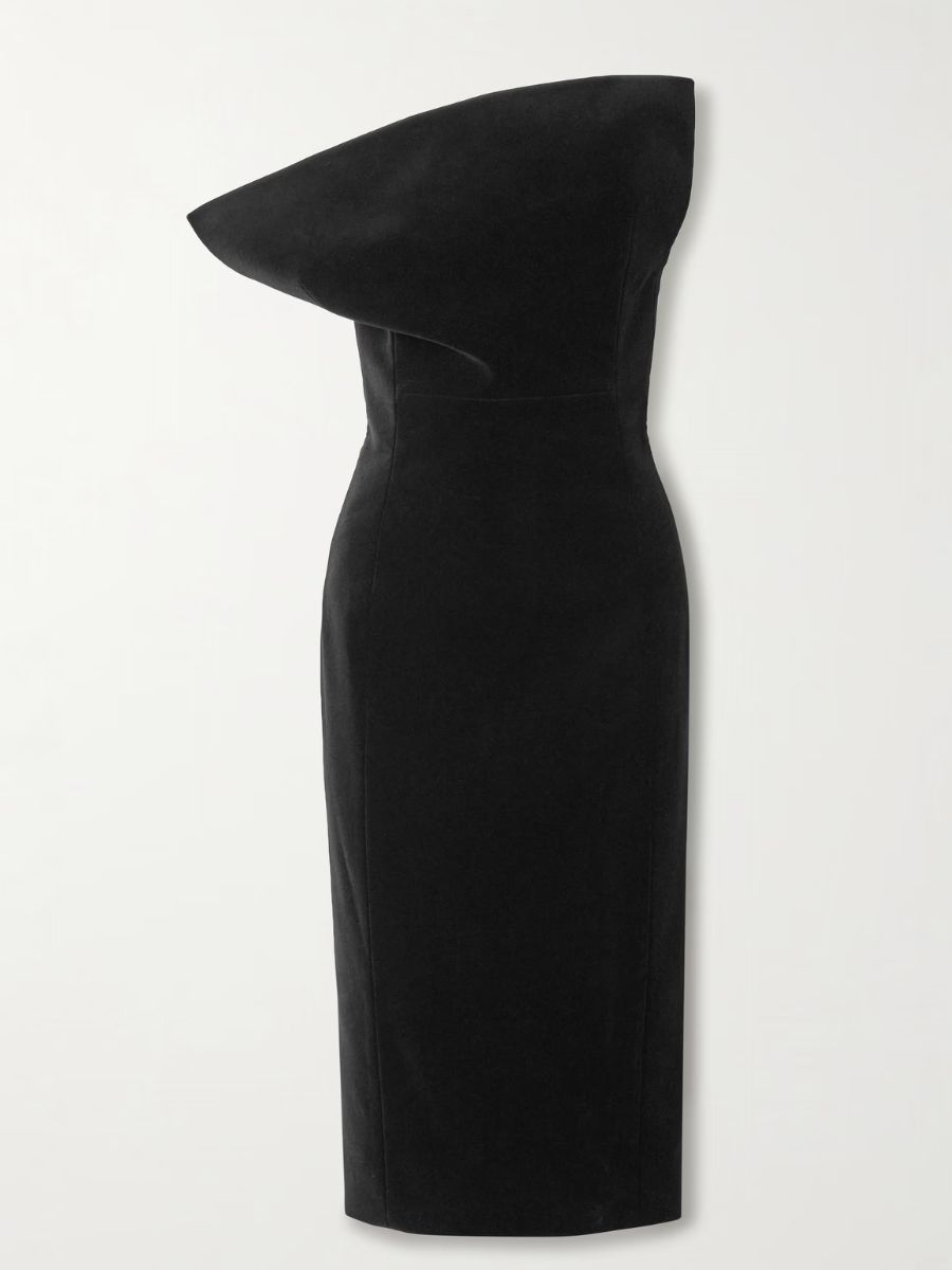 Black Sato draped strapless velvet dress, Toteme, €2,980; www.net-a-porter.com.