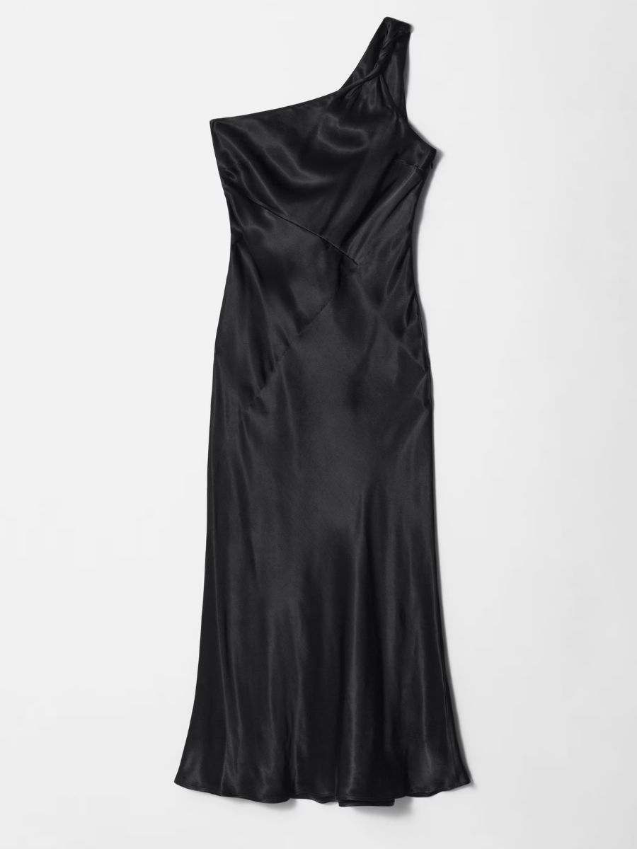 Black satin one-shouldered midi dress, €89, at & Other Stories.