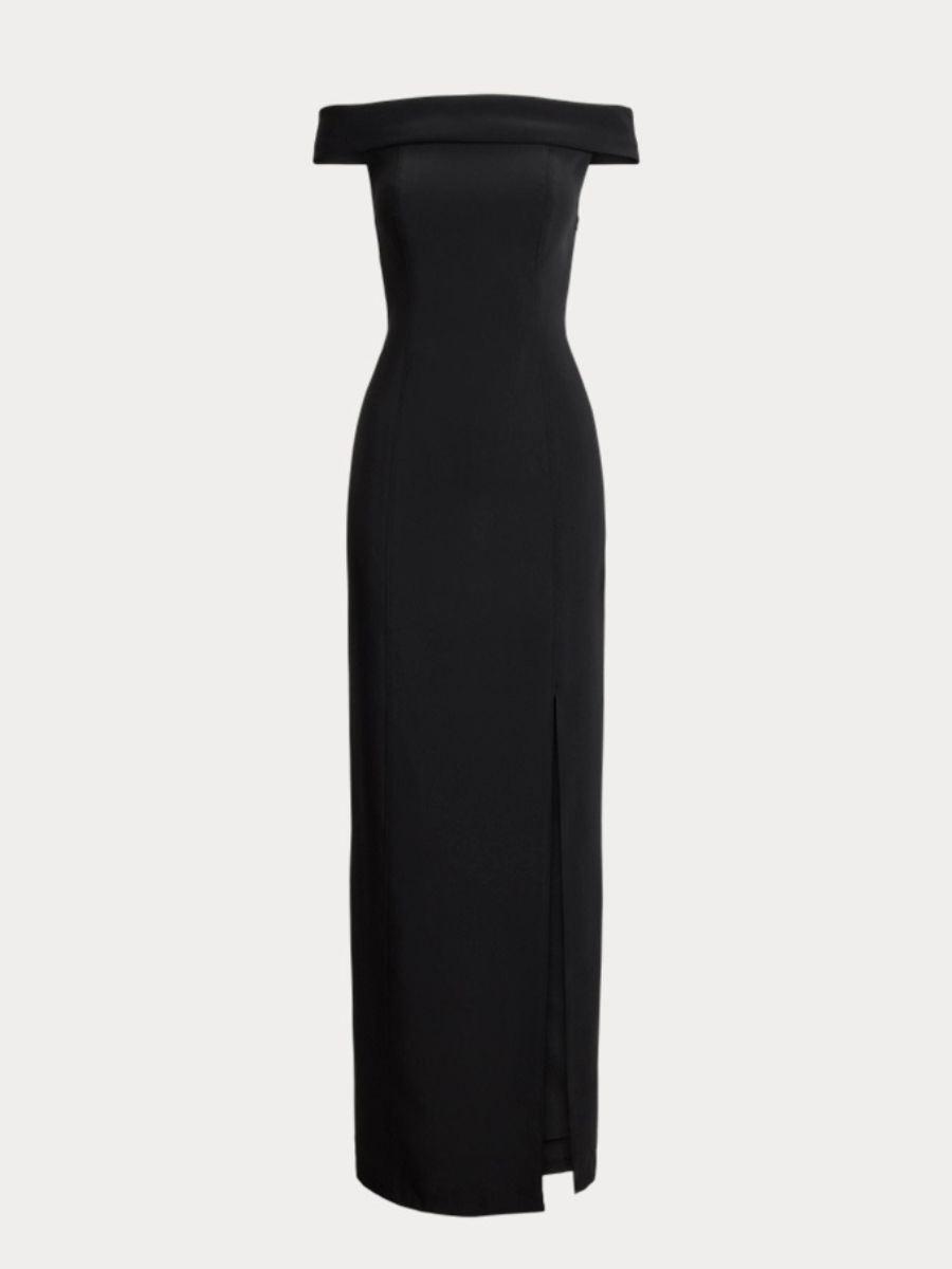 Black crêpe off-the-shoulder gown, €325; www.ralphlauren.ie.