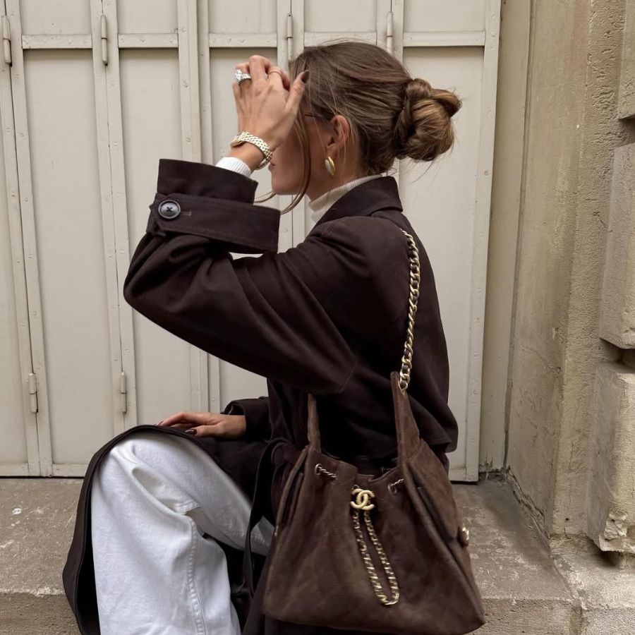 Nab the right brown suede leather bag to wear as your day-to-day hold-all – it’ll look effortlessly expensive and it’ll never date. Dark brown Moon hobo suede bag, was €750, now €450; www.liffner.co.
