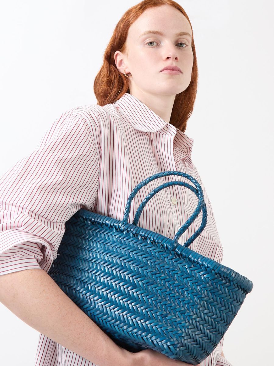 Dragon Diffusion’s viral woven leather bags are far more than a summer sensation: we love teaming ours with a sleek trench, or contrasting it with a navy wool coat. This tote comes in at under €200. Blue Triple Jump small tote bag, Dragon Diffusion, was €375, now €170, at Brown Thomas.
