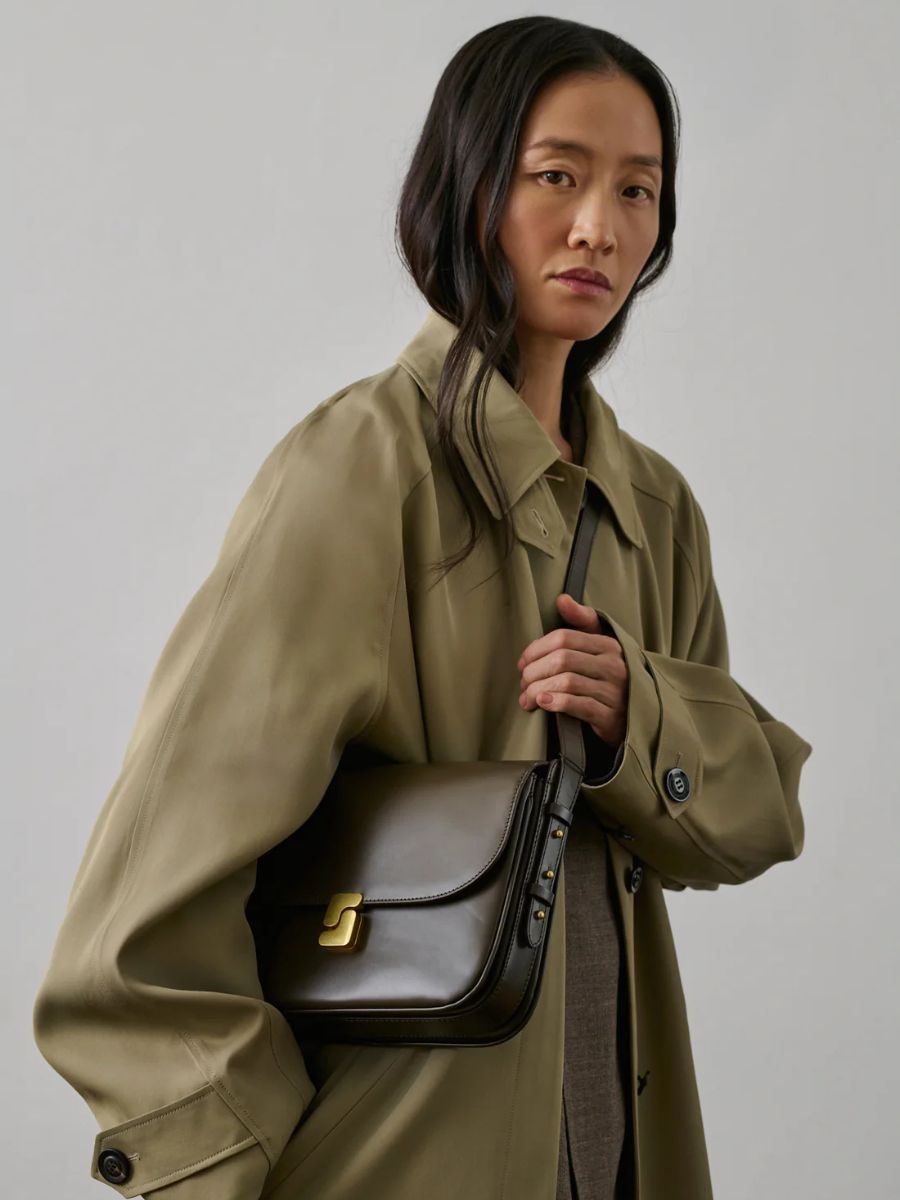 A great leather cross-body adds a certain kind of gloss to any outfit. This one, by French brand Soeur, channels a modern Parisian vibe. Khaki leather cross-body with gold hardware, was €425, now €340; ie.soeur.fr.