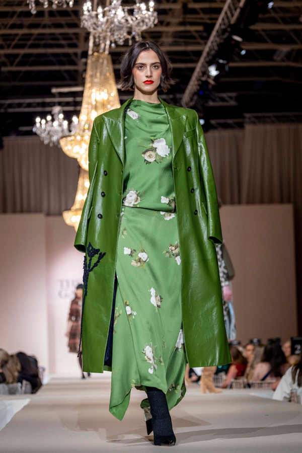 The expert team at Emporium Kalu boutique in Co Kildare has an eye for detail – every outfit at the Look the Business fashion show was completed with the perfect finishing touches. There were cloche hats by Catarzi, leather gloves by Irish designer Paula Rowan, handbags by Maria La Rosa. A dramatic green damask coat was worn over a For Restless Sleepers floral blouse and matching wide-leg trousers. The final look brought the wow factor: a pink sequined dress by The 2nd Skin Co, with a blush pink coat by Di Stavnitser and nude leather gloves by Handsome (pictured above). For a winter wedding or black tie occasion, look no further than Kalu.