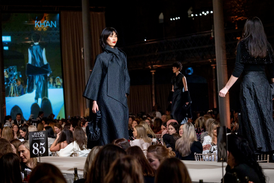 Khan boutique in Blackrock, Co Dublin is known for its unique selection of international labels. At the Look the Business fashion show, guests saw looks from Essentiel Antwerp, Dorothee Schumacher, Dom Goor, Charlotte Sparre and Irish designer Róisín Linnane. A black velvet lurex dress with a faux fur jacket, both by Essentiel Antwerp, presented the perfect outfit idea for party season. Róisín Linnane’s elegant textured coat with wrap scarf (and worn with a matching skirt) is an exquisite investment piece for upcoming occasions and one that is high on THE GLOSS team’s wishlist.