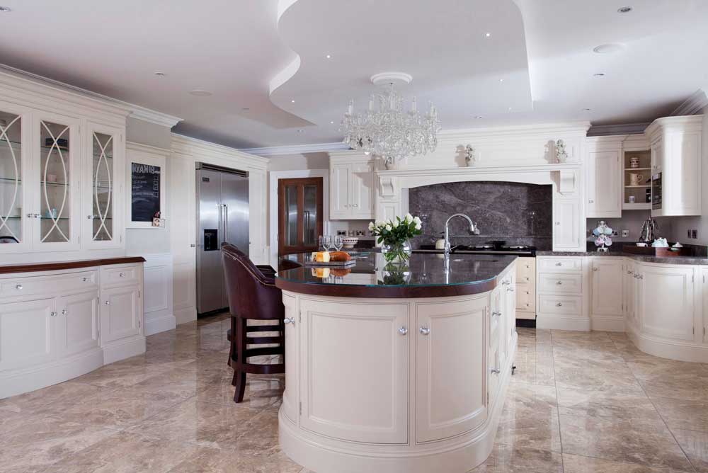In the images shared in this post which feature kitchens designed and created by O’Connors of Drumleck, you will notice the differences from curved edges and shapes, to the contrasting work surfaces within the islands. There are no rules here, and you can add appliances or not, according to your preference. It is handy to put a stove top into the island so that you can stir and chat at the same time, if it takes your fancy. And grouping the breakfast bar on one side, leaves you with plenty of storage space that can be accessed without battling through a sea of legs. Depending on the shape of your room, the kitchen island also acts as a divider between zones. Our kitchen designer can help you ensure that the island is not too big and works perfectly for your space, family and lifestyle.