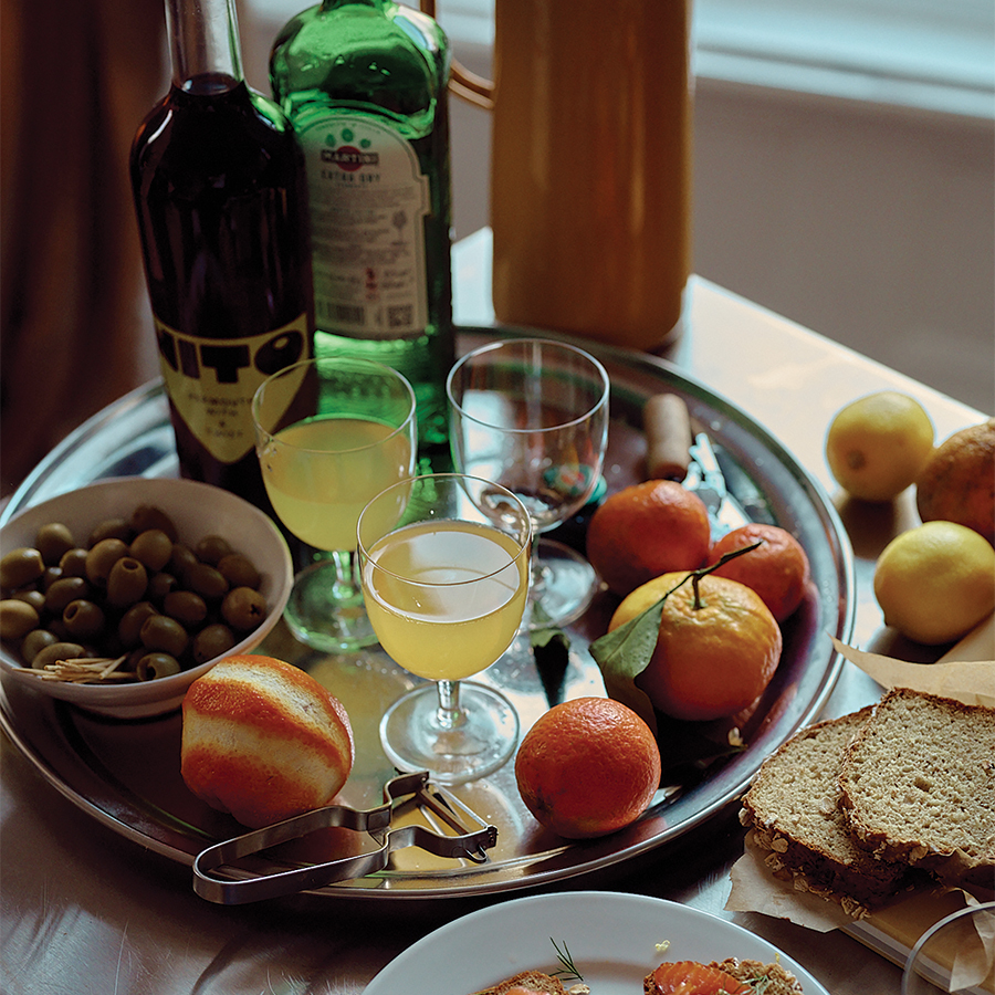 To make the Clementini (I’m really pleased with myself for coming up with this name!), shake the juice of a clementine with six parts vodka to one part white vermouth, then pour into a frozen glass (this part is essential – and a good reminder to always have a stash of freezer-chilled glasses at the ready). The key is to have only one, so as not to arrive at the dinner table too tipsy … @kittycoles