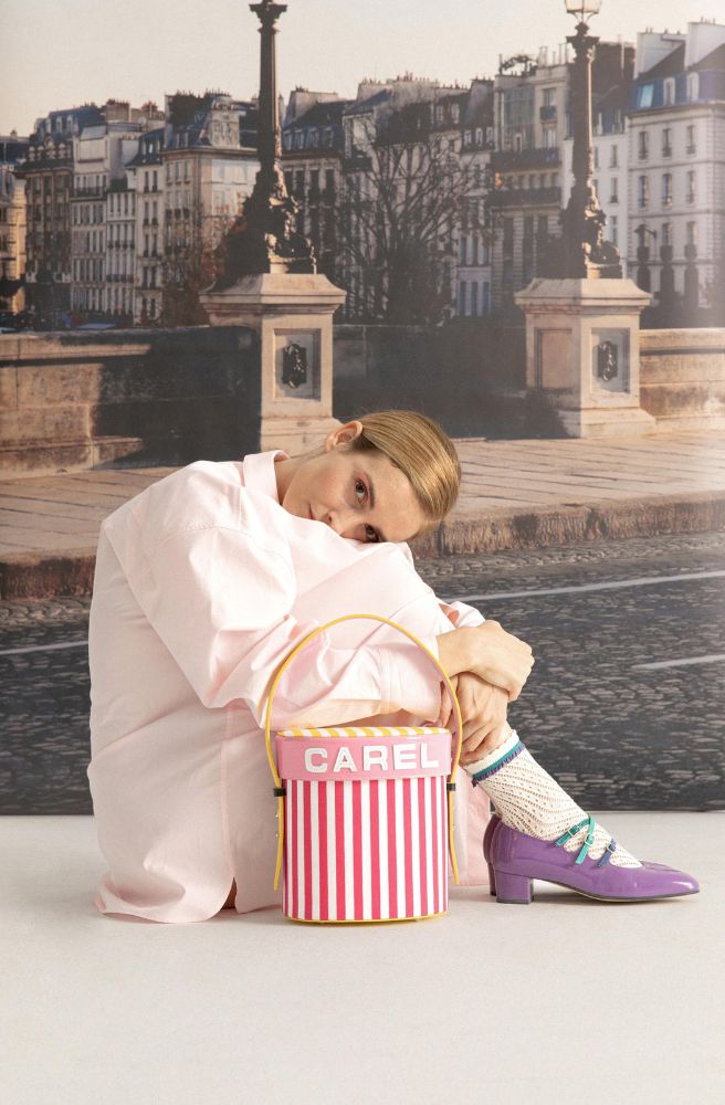 La Veste, the Spanish brand founded by Maria de la Orden and Blanca Miró Scrimieri, and loved for its playful use of colour, teams up with heritage shoe brand Carel, makers of the perfect Mary Jane. What to expect? A collection of shoes and bags in bold stripes and vivid hues, from the aforementioned patent Mary Janes to Mary Quant inspired block-heeled boots and bold totes in bucket shapes. Take note of: The Bibi, an updated take on a traditional hat bag, €410, (pictured, above) that nods to Jackie O glamour. www.carel.fr.