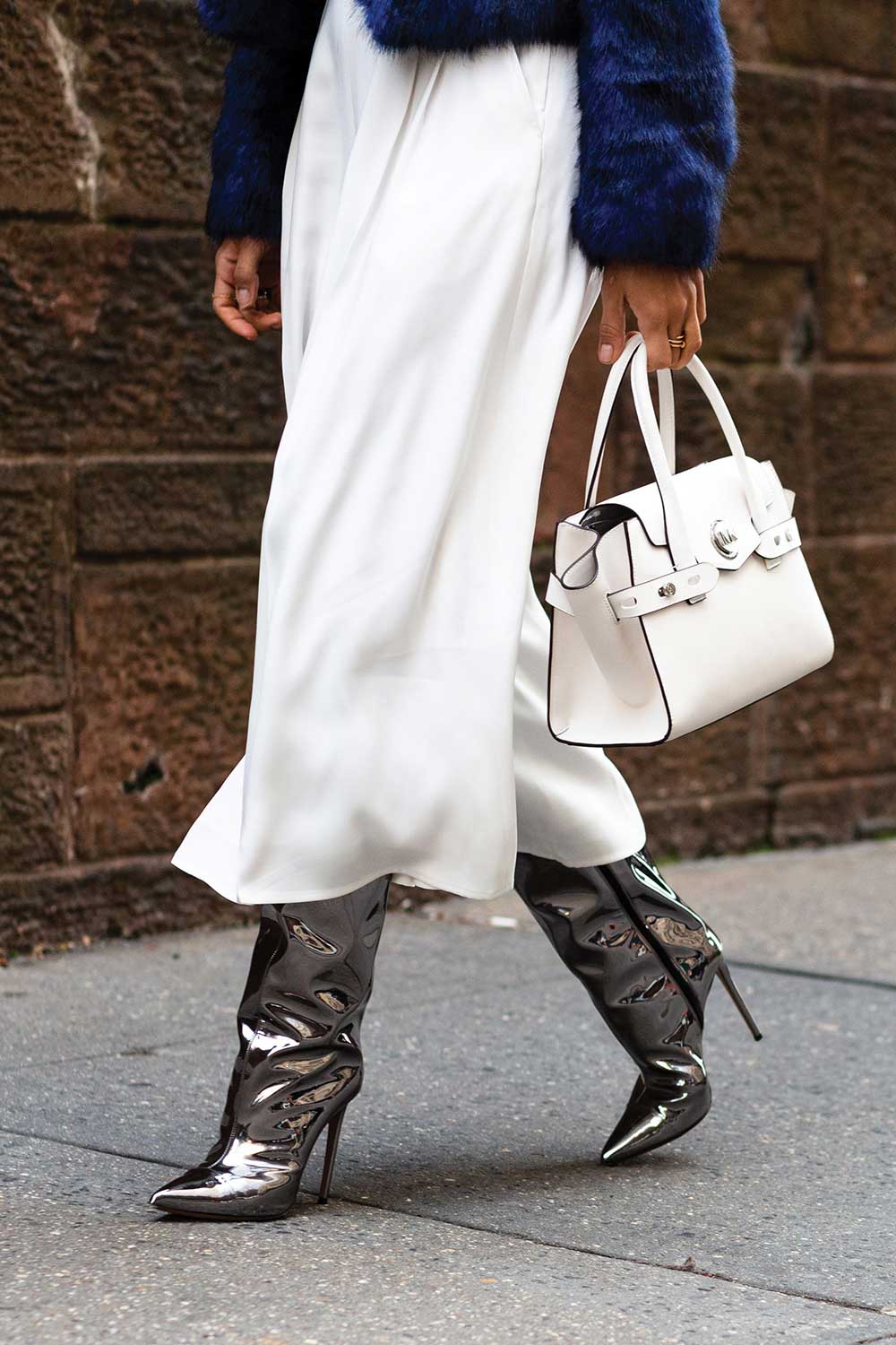 Heels – or, say, waddle-inducing pencil skirts – were only constricting when one could rightly argue that women were pressured into wearing them, when there was the suggestion of a lack of choice. What happens to that theory when the option to wear them is basically gone? And when the thirst to put them on appears on its own, uninfluenced by gaze or occasion, on a quiet Tuesday morning, while eating leftover take-out by the fridge between video calls? Locked down, we can appreciate what makes us feel free: what we want, what we miss.