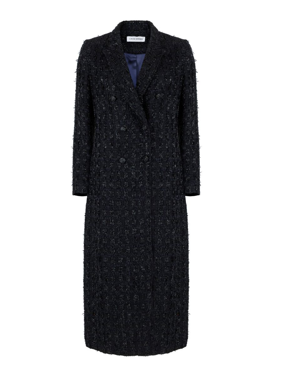 Black Kristina lurex tweed coat, €1,795, at Louise Kennedy.