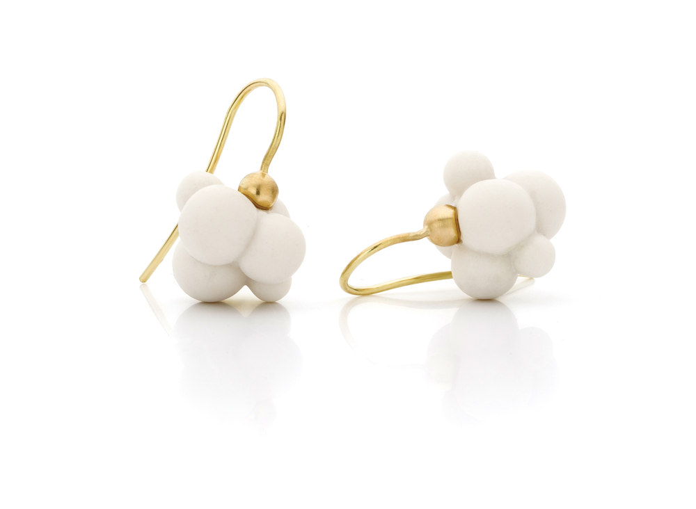 5. I’M LOOKING at clouds from both sides now, in matte white porcelain cumulus earrings suspended from contrasting 14k yellow gold fittings by Amsterdam-based Atelier Luz. Browse a curated selection of Irish and international jewellers at DesignYard, Dublin. www.designyard.com.