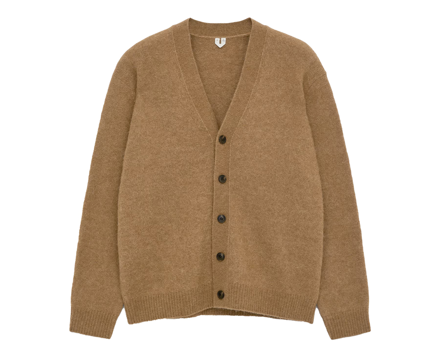Dark beige wool and alpaca blend cardigan, €99; www.arket.com.