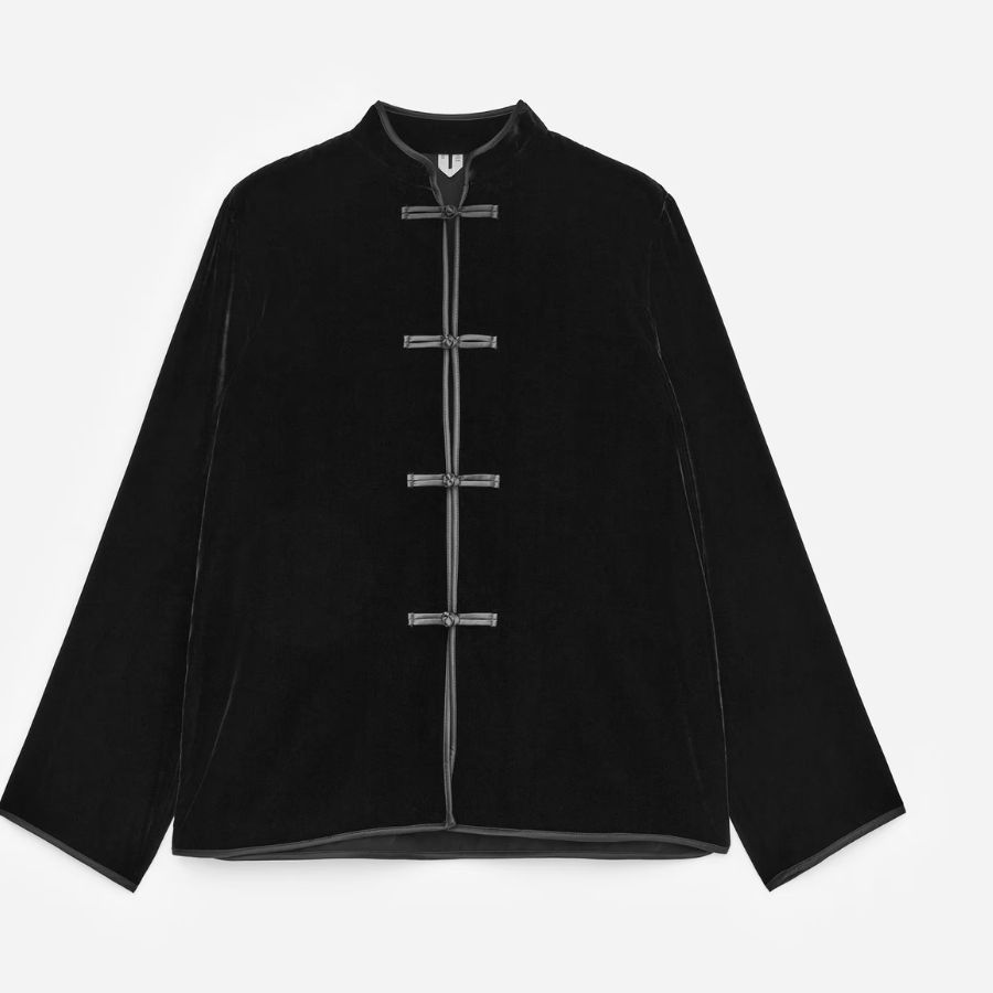 Black silk-velvet overshirt, €129, at Arket.