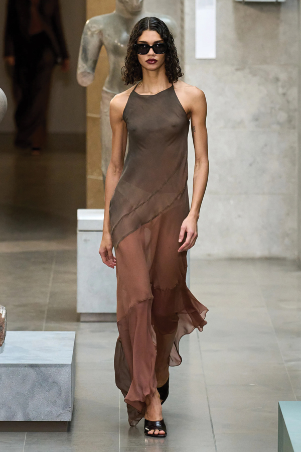 1. I’M BURNISHING my reputation in gauzy ombré Peter Do SS25, dyed using leaves/tree bark/earth.