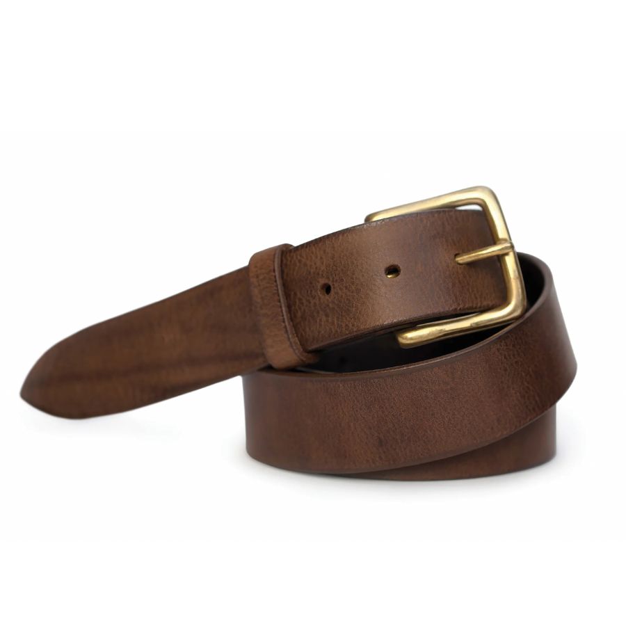 6. I’M TIGHTENING my handmade leather and brass belt from De Bruir.