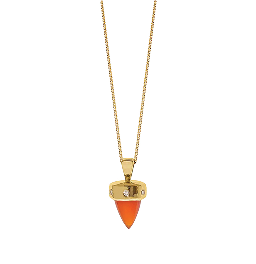 8. I’M BITING a 9ct gold carnelian diamond Bullet Pendant by Edge Only.