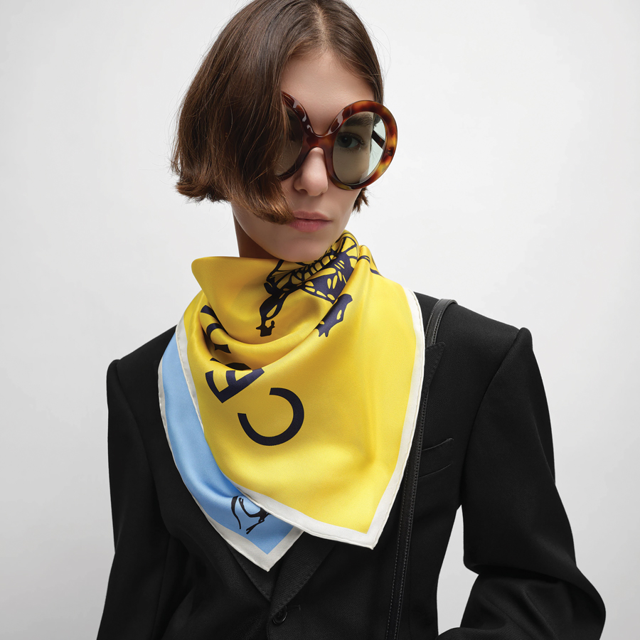 7. I’M COLLARING the silk scarf trend in a Celine silk twill square.
