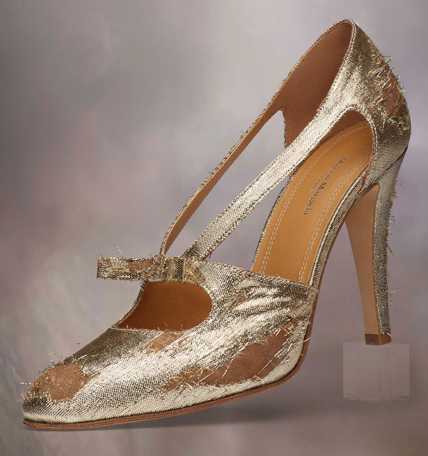12. I’M GILDING lillies in Maison Margiela distressed gold cut-out pumps.