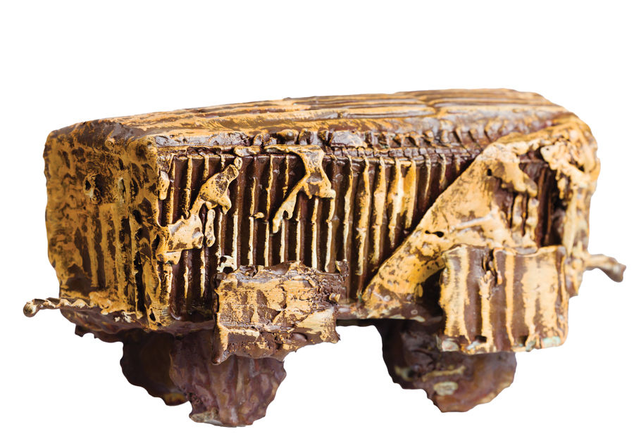 11. I’M FREIGHT-HOPPING in a Tim Morris bronze boxcar, at Solomon Fine Art Dublin.