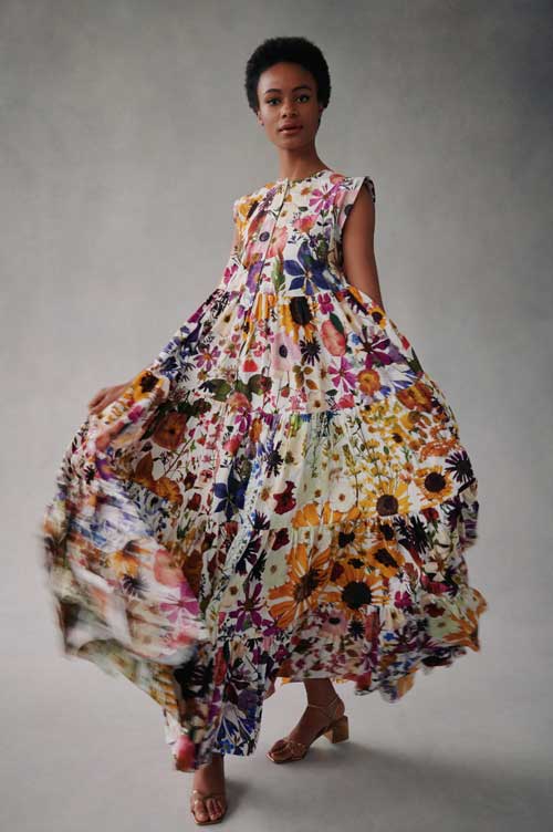 11. I?M BLOOMING in a billowy maxi dress by Oscar de la Renta.