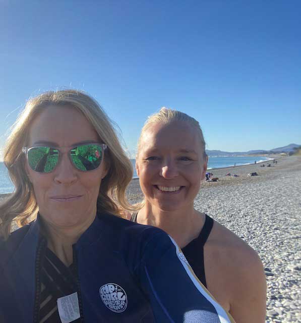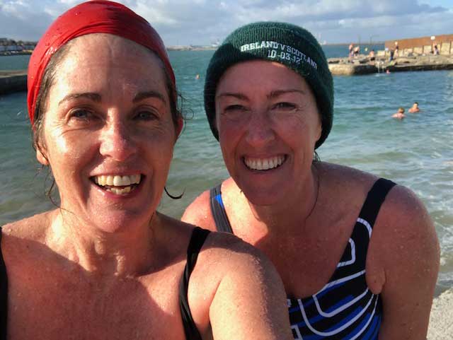 Rachael has a real zest for life and has a lot of energy. She is always on the go and we have lots of similar interests. We go hiking with our families together and we did the Ironman 70.30 in Dun Laoghaire as a team with one other friend a few years ago (when we were free and big racing events like that were possible). Last June, we started swimming together on a weekly basis after the first wave of Covid had passed. It’s not something that we had previously done together but like many people we wanted to escape the four walls at home/the office, reconnect with nature and ourselves and of course any excuse to socialise. The ritual is ongoing and other friends have joined us when they can – even friends not so keen on the swim or early mornings sometimes venture down just for the soul-food chats. As Luke O’Neill has mentioned, sea swimming is an excellent antidote to the pandemic – it helps combat all the stress and after the (freezing) dunking you come out feeling alive and ready to take on the day.