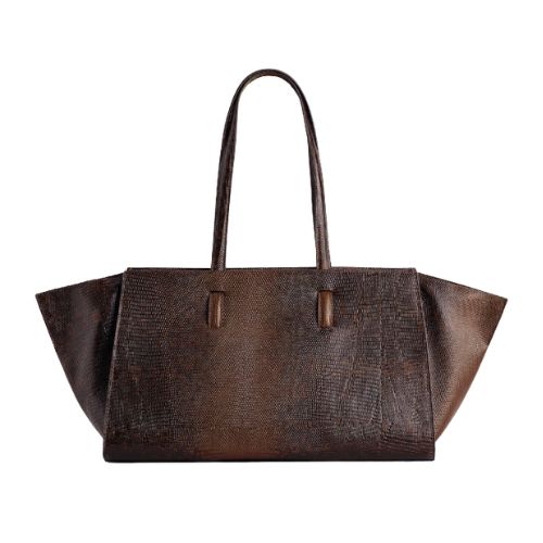 Brown croc-effect leather tote, €249