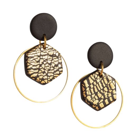 Gold leaf Hex earrings, €52