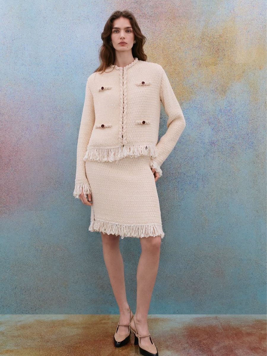 Margot Robbie‘s new fringed bob may have been the talking point on the Chanel front row, but this refined skirtsuit with artisanal textures from the AW26 collection is sticking with us.