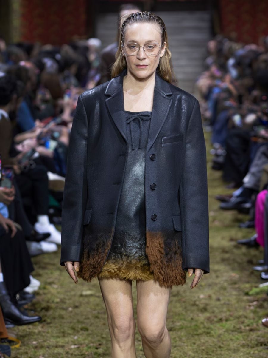 Fashion’s most enduring It girl Chloë Sevigny walked the runway for Miu Miu’s Paris Fashion Week show alongside veteran Australian model Gemma Ward and actress Gillian Anderson, who looked exquisite. This wasn’t Sevigny’s first rodeo, however, the A-list actress first walked the runway for the Italian fashion house in 1996. (We’re also noting the return of the zig-zag hairband.)