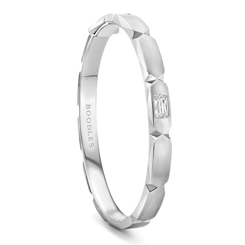 For him: 18ct single mine origin white gold Manhattan bangle with Ashoka-cut diamond, at Boodles, 71 Grafton Street, Dublin 2.