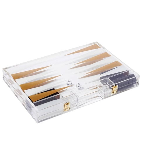 Whiskey noir lucite backgammon limited edition set, €170, at Interiors Atelier, 23 Dunville Avenue, Ranelagh, Dublin 6.