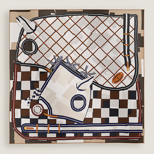Chocolate Camails à Carreaux silk scarf, Hermès, €530, at Brown Thomas