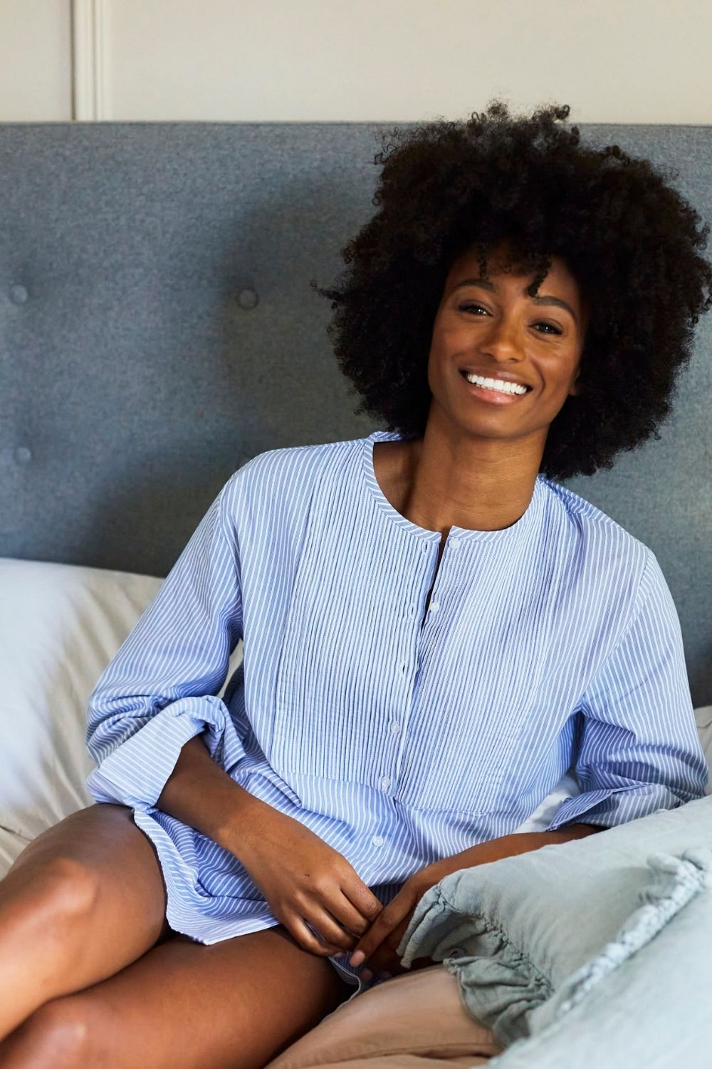 This is certainly the case with Rae Feather. One look at the Northern-Ireland born designer’s Instagram and you suddenly feel transported to the British countryside. Unsurprisingly, that’s where Feather lives (in Northamptonshire, near Oxford) and designs her eponymous label from. To speak in social media talk, Rae’s entire vibe is very Nancy Meyers. A house that wouldn’t look out of place in Meyers-directed movie The Holiday, and a laid-back but refined wardrobe to go with. Sometimes it’s hard to tell if you want the model’s bib-front shirt, the living room painted in calming neutrals – or both.